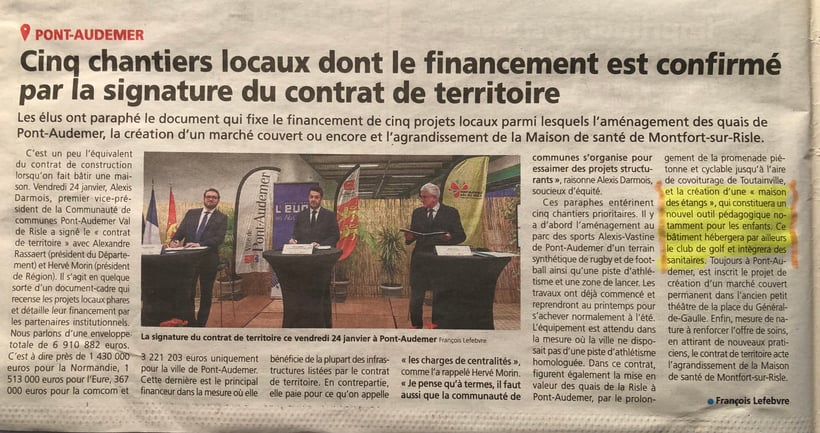 Au conseil municipal de PONT-AUDEMER du jeudi 11 juillet 2024, le maire a annoncé l'inscription de quatre grands projets à Pont-Audemer (Eure) dans le contrat de territoire dont la « Maison des Étangs »