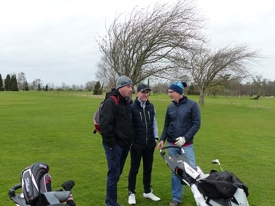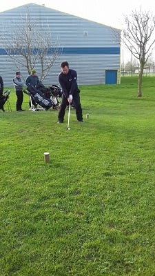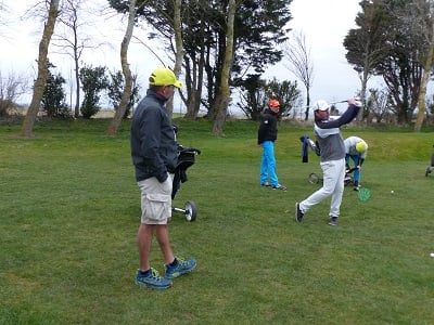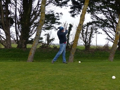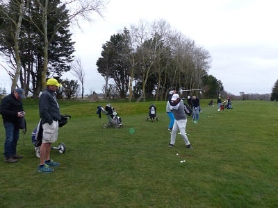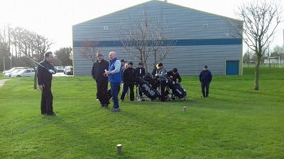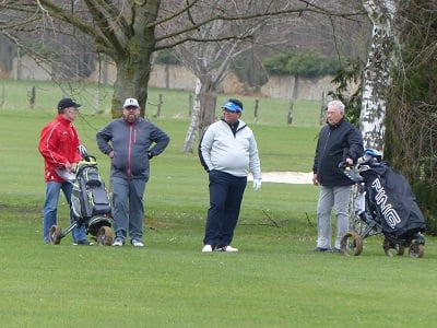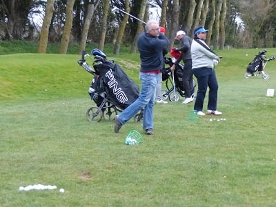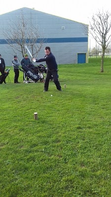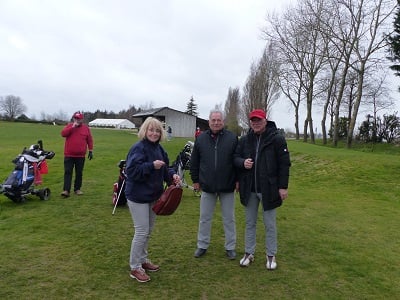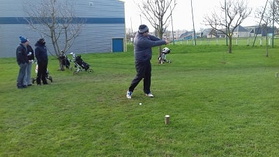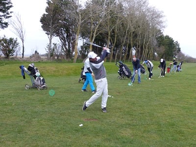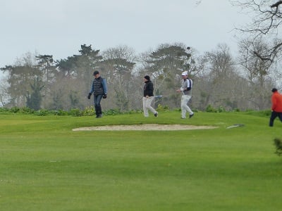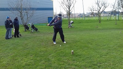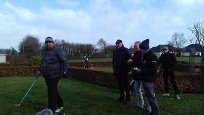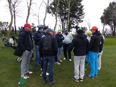 Golf de Garcelles, dimanche 3 mars 8 heures, vent très fort en rafale, la météo annonce 95 km/h. Tous les joueurs du matin, pour les doubles en foursome, sont au practice.